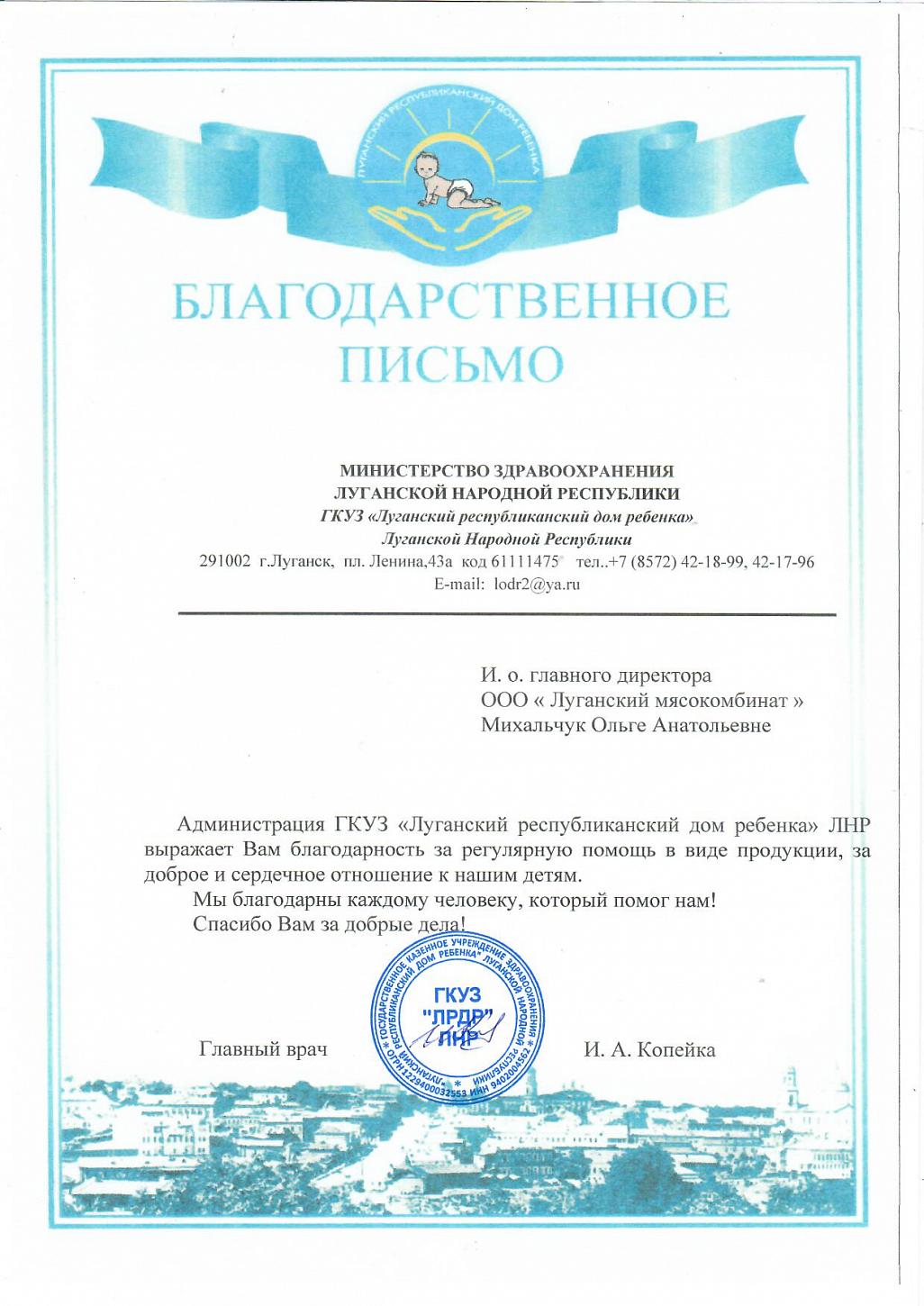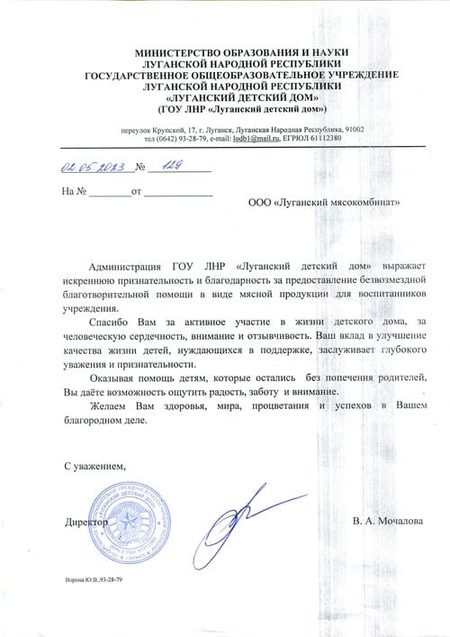 ООО «Луганский мясокомбинат» уже давно окутывает всеобъемлющей любовью и помощью родной город. Благотворительность в первую очередь это забота. Она может быть разной, но всегда несет в себе свет и добро. И это добро озаряет и того, кто получил дары, и того, кто их отправил.